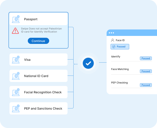 Use intelligent decision engines to automatically evaluate user risk, document authenticity, and screening results. Apply configurable rules to approve, escalate, or decline cases based on real-time data and regulatory thresholds.